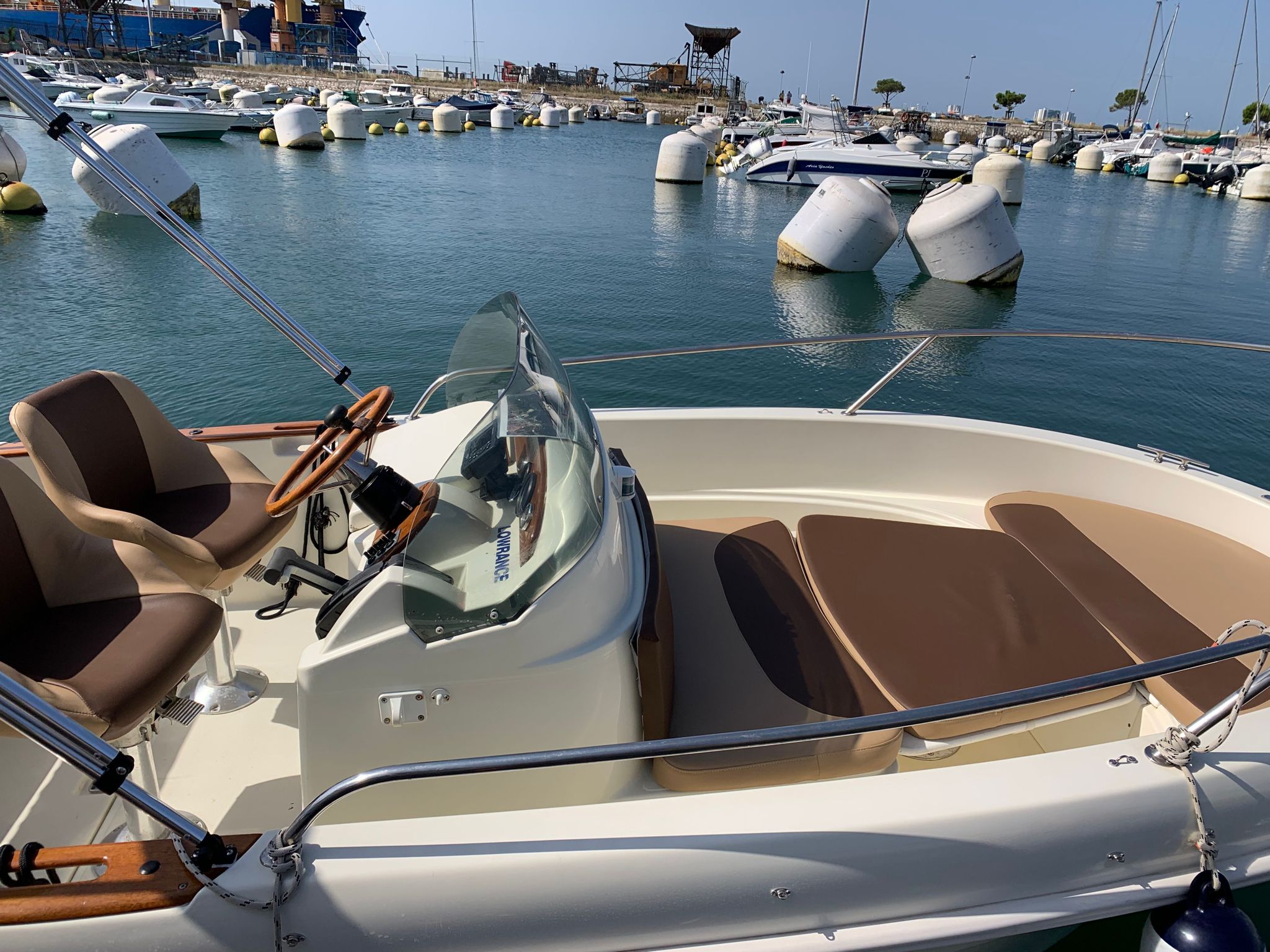 Aluguer de barco de fibra com lotação para 6 pessoas, perfeito para a família e/ou amigos.